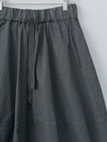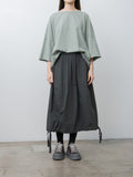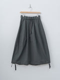 An A-line skirt featuring an adjustable hem with side drawstrings that can be tightened to create a balloon shape. It is crafted from a midweight compact cotton that feels structured yet breathable with a smooth hand. Details include an elasticated waist with drawstrings and side pockets.