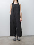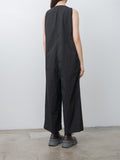 A sleeveless wide leg jumpsuit from Album di Famiglia made in a lightweight stretch cotton. It features a wide rounded neck, side pockets, three button closure on the back, and wide, cropped legs.