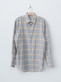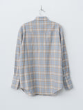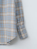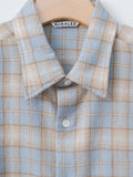 A relaxed-fit shirt crafted from a delicately airy wool fabric in a light blue and beige check. Made from ultra-fine combed wool, the yarn is spun using a special technique that creates a light, fluffy texture. After weaving, the fabric is finished to enhance its natural drape and comfort. Design details include a regular collar, curved hem, buttoned front, and buttoned cuffs.