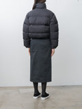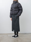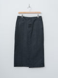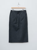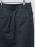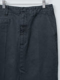A straight-fit, midi-length skirt with a front vent and an unlined construction, designed to sit lower on the waist. It is made from a fabric woven using three-ply twisted yarns of Egyptian extra-long staple Finx cotton, enhancing the natural softness and smooth texture. After garment dyeing, each piece is hand-finished by artisans, giving the fabric a unique, uneven tone with rich depth and a multidimensional appearance. Details include side pockets, back welt pockets, belt loops, and a clean front with a concealed closure.