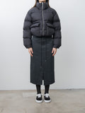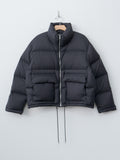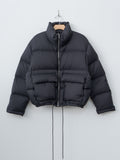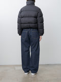 True to its name, a voluminous yet exceptionally lightweight puffer from Auralee. It is crafted from an ultra-light, ultra-thin mini ripstop fabric and insulated with French white duck down for a superbly airy, fluffy texture. The interior is finished with a special urethane coating that provides windproof and water-repellent performance without adding weight. Design details include a cropped, oversized silhouette, a high neck with zip closure, front patch pockets with two-way opening, and adjustable drawcords at the hem along with snap-adjustable cuffs.