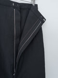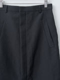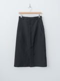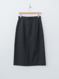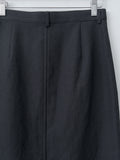 A fitted midi skirt made from a densely woven oxford fabric of wool, cotton, and linen. The result is a richly textured surface with a crisp, dry touch and subtle natural sheen. Features a wrap-front construction with a front zipper closure, front slant pockets, belt loops and an unlined interior.