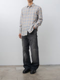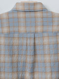 A relaxed-fit shirt crafted from a delicately airy wool fabric in a light blue and beige check. Made from ultra-fine combed wool, the yarn is spun using a special technique that creates a light, fluffy texture. After weaving, the fabric is finished to enhance its natural drape and comfort. Design details include a regular collar, curved hem, buttoned front and cuffs.