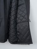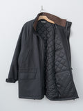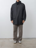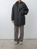An oversized parka featuring quilted padded lining and an elasticated drawstring at the hem and waist. It is made from ultra-fine Australian Merino wool flannel (15.5 microns, Super 160's), offering an exceptionally soft and luxurious hand. The jacket features a smooth, full-bodied texture developed through a slow fulling process, with a subtle sheen and padded construction for warmth. Details include a high neck with lining, hand warmer pockets, flap patch pockets, inner pockets, raglan sleeves, and adjustable cuffs and hem. Relaxed fit.