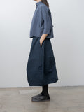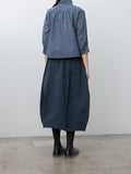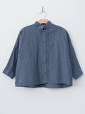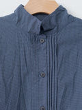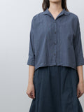 The Claudia Shirt is a boxy, slightly cropped style crafted from a lightweight and breathable cotton in navy micro check. It features a pleated button front, a stand collar, three-quarter sleeves with buttoned cuffs, and signature Tyrol pleats at the back yoke for soft volume.