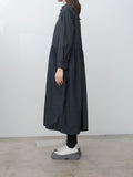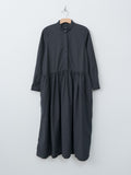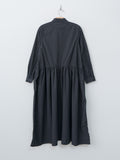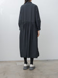 The Greta is a pullover dress from Bergfabel featuring Tyrol ruching accents at the collar and cuffs. The cotton is lightweight with a soft, washed finish. Details include concealed front buttons, side seam pockets, gathering around the waist and a midi length. Relaxed fit.