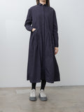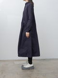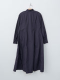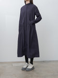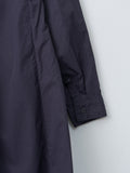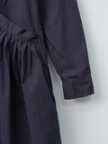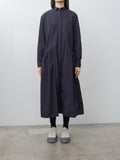 The Sally Dress doubles as a light overcoat and features two front pockets with Bergfabel's signature Tyrol ruching. It is made from a lightweight, crisp cotton with a washed finish. Details include a short collar, dropped shoulders, concealed front buttons, buttoned cuffs, and curved paneling throughout the body that create a beautiful A-line shape.