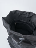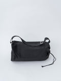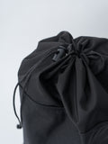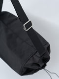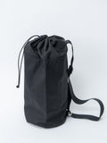 A medium-sized drawstring shoulder bag featuring a tall cylindrical silhouette and adjustable strap. Made from 100% nylon, the fabric is lightweight and durable with a matte finish. The bag features a wide opening with tonal drawstring closure, an inner zip pocket, side seams for structure, and a reinforced bottom panel.