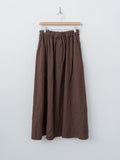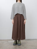 A softly structured skirt crafted from a lightweight linen–cotton blend with a subtle mini houndstooth pattern. The fabric has a lightly textured, breathable feel, and the silhouette falls into an easy, gentle A-line shape. Details include an elasticated waistband with inner drawstrings, side seam pockets, and a cotton lining.