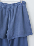 Layered sweatpants featuring a wide-leg fit with built-in shorts on top. The custom-developed fabric is midweight, knit from open-end cotton yarns for a vintage-like texture, and finished with a softly brushed lining for warmth. An inner ribbed layer exists under the shorts to create the look of layering without the bulk of actual layers. Details include an elasticated waist with drawstrings, side pockets, and an adjustable drawcord hem.