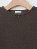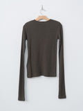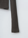 A fitted tee featuring a concealed front zipper and elongated sleeves that gather softly at the wrists, offering a minimal silhouette with a subtle playful touch. Crafted from fine Australian merino wool in a plated rib knit, the fabric incorporates randomly dropped stitches for a unique, lightly distressed texture in each piece and is finished with a special drying process that gives it a soft, airy handfeel. Hand washable.