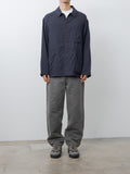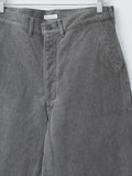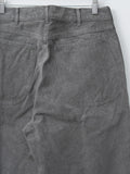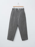 Straight-leg trousers with a relaxed fit inspired by classic American workwear. They are made from heavy oxford fabric woven with thick hemp and cotton yarns at high density. The material is dyed with traditional Japanese ink dyes and repeatedly washed without tension to create a voluminous texture and vintage appearance. Details include side pockets, back patch pockets, and a slightly tapered hem.