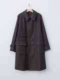 This balmacaan topcoat is one of Kaptain Sunshine’s most well-known outerwear. Apart from the clean lines and impeccable construction, this double-cloth melton is made of ultra-fine 16.5 micron Super140s wool that offers a well-balanced structure—lightweight, softly brushed, and with a subtle sheen—while maintaining moderate firmness. Details include throat latch/chin strap, front pockets, one ticket pocket, back vent and raglan sleeves. Regular fit.
