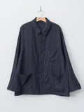 A relaxed-fit shirt jacket crafted from lightweight, double-layer gauze woven with fine-count merino wool - a light yet warm layering piece. The material is washed to enhance its natural texture, resulting in a soft, airy finish. The design features three front patch pockets, a simple unlined interior, and slightly dropped shoulders for an easy, comfortable silhouette.