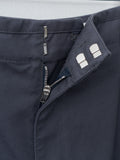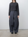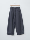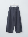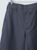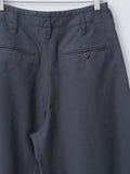 The Large Chino features a wide-leg silhouette with an oversized cut. They are made from heavy cotton twill — a thick Japanese fabric that has undergone a rinse treatment for added softness. Details include a structured waistband with bias trim, belt loops, hidden button closure, metal buttons, side pockets, a ticket pocket, and back patch pockets.
