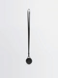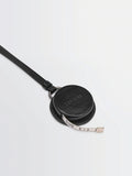 The Molded Tape Necklace is crafted from patinated black leather using Lemaire’s molded leather technique. It features a sculptural case with an embossed Lemaire logo at the front and a removable leather strap with an engraved metal detail. Inside, a functional measuring tape is housed within the molded case.
