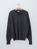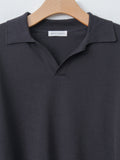 A skipper polo knit made from high-gauge jersey knit cotton using air-spun Supima yarns, resulting in a smooth surface with a dry touch and light structure. Features an open V-neck placket, soft collar, dropped shoulders, and ribbed cuffs and hem. Loose fit.