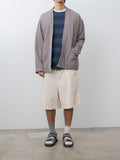 Ts(s)' signature open-front cardigan. This season's iteration offers a lightweight rail rib stitched cotton outer with a striped cupro lining. Details include dropped shoulders, large patch front pockets and elongated sleeves that can be rolled up.