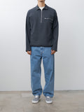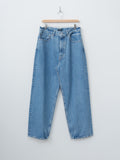 From Yleve a 90s-inspired baggy-cut jean made from 13.5oz rigid denim woven on vintage looms. The indigo version is finished with an eco-friendly dyeing process and hand-applied fading techniques by skilled artisans. Details include a classic five-pocket construction, a white-tab selvedge, two-tone stitching, and hidden rivets. Wide, straight legs with a subtle taper.
