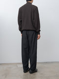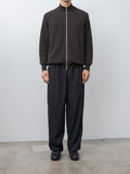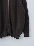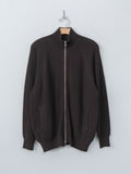 A zip-front drivers knit made of high-twist cotton yarn at 3x the standard twisting process. The result is a slightly crisp, durable hand and natural stretch from its wavy structure. Features a stand collar, a two way zip closure, raglan sleeves, front pockets, and ribbed neck, cuffs and hem. Relaxed fit.