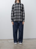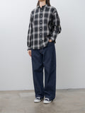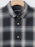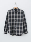 A loose fit, long-sleeve button-down shirt featuring N&N's custom cotton/nylon blend - it is wonderfully lightweight with a crinkled surface and a dry hand. Details include a rounded collar, curved hem, buttoned cuffs, and side buttons that allow it to be styled as a wrap shirt.