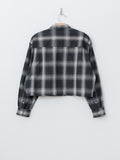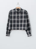 A cropped button-down shirt with a relaxed fit, crafted from N&N's custom cotton-nylon blend - it is wonderfully lightweight with a crinkled surface and a dry hand. Details include a regular collar, dropped shoulders, and buttoned cuff.