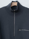 A half-zip pullover crafted from 17.5-micron ultra-fine Australian merino wool that has been heavily milled to create a soft, felted texture. This processing adds structure while preserving merino’s natural softness, warmth, and comfort - the result is like a light sweater tee. Design details include a zip front pocket, a stand collar that can also be worn folded down, dropped shoulders, and a relaxed fit.
