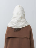 A lightly padded puff scarf featuring all-over floral embroidery. It features a simple, practical closure to keep it securely in place while adding warmth and texture to an outfit. It is a fun, versatile piece that can be worn around the neck or the head.
