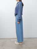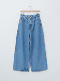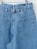 Structured jeans from Yleve featuring a high rise and a generous, full-length leg. Crafted from rigid 13.5oz indigo denim, the fabric has a dry hand feel that will soften and mold to the body with wear. Details include contrast stitching, classic five-pocket construction, and a back buckle for adjusting and perfecting the high-waist fit.