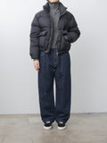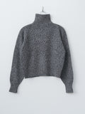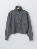 A full-zip cropped knit jacket crafted from twisted heather yarn of wool and cashmere for a soft, warm yet lightweight texture. The silhouette is inspired by a vintage Cowichan-style sweater, updated with wide sleeves and a high neck that can be worn folded down. A great standalone sweater as well as an inner layer under coats and puffers.