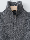 Wool Cashmere Melange Knit Full Zip P/O - Black x Gray