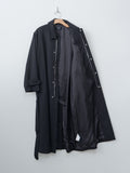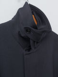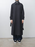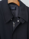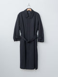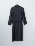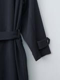 Yleve’s elegant take on the classic gabardine coat, crafted from a dense wool twill woven with three-twisted warp yarns that create a more pronounced, substantial twill texture. It features a concealed front zipper with snap buttons, a chin tab, dropped shoulders, a removable tonal belt, side pockets, adjustable buttoned cuffs, a high back vent, and full lining. Full length with a relaxed fit, the silhouette is clean and fluid, designed for easy layering and multi-seasonal wear.