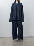 The Carracci Pullover is an oversized zip pullover crafted from a lightweight, super 110s suiting wool. It features a half-zip front closure, a stand collar, elongated sleeves, and a clean finish hem at the cuffs and hem. Coordinating piece with Plof Trousers in Admiral.
