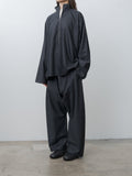 The Carracci Pullover is an oversized zip pullover crafted from a lightweight, super 110s suiting wool. It features a half-zip front closure, a stand collar, elongated sleeves, and a clean finish hem at the cuffs and hem. Coordinating piece with Plof Trousers in Charcoal Melange.