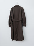 From Ssstein, a double-breasted coat crafted from double-weave melton using Super 120’s worsted wool. The fabric is carefully finished to reduce fuzziness, creating a smooth, lustrous surface with a refined texture. Designed with an optional leather drawstring at the waist, it allows for flexible styling while maintaining an oversized silhouette. Other details include full lining, a convertible collar, removable belt, dropped shoulders, side pockets, adjustable cuffs and a back vent.