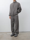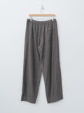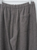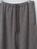 from a luxurious, lightweight wool cashmere flannel that combines the soft, fleece-like touch of cashmere with the natural fullness and elasticity of extra fine lambswool. The silhouette features a relaxed, wide fit with a slightly twisted side seam, an elastic waistband with inner drawstrings, side pockets, and a back patch pocket.