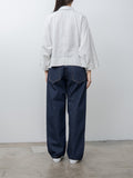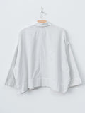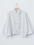A relaxed pullover shirt made from a soft, lightweight twill fabric woven in the Okayama prefecture, using a specially untwisted yarn that softens further with each wash. The collar and front placket are constructed from a contrasting cotton material for structure and subtle contrast. Other details include dropped shoulders, a partial button placket, and 7/8 length sleeves. Wide fit.
