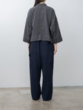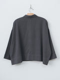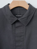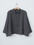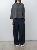 A relaxed pullover shirt made from a soft, lightweight twill fabric woven in the Okayama prefecture, using a specially untwisted yarn that softens further with each wash. The collar and front placket are constructed from a contrasting cotton material for structure and subtle contrast. Other details include dropped shoulders, a partial button placket, and 7/8 length sleeves. Wide fit.