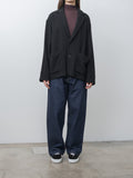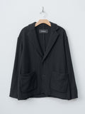 A lightweight, unlined blazer featuring a relaxed cut and soft construction. It is made from flannel wool that has been both fulled and tumbled, resulting in a soft texture with gentle warmth. The two-button jacket has a deep V-front, notched lapels with a hidden button under the collar and is designed for casual layering.