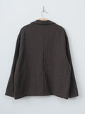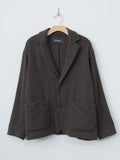 A lightweight, unlined blazer featuring a relaxed cut and soft construction. It is made from flannel wool that has been both fulled and tumbled, resulting in a soft texture with gentle warmth. The two-button jacket has a deep V-front, notched lapels with a hidden button under the collar and is designed for casual layering.