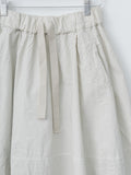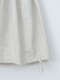 An A-line skirt featuring an adjustable hem with side drawstrings that can be tightened to create a balloon shape. It is crafted from a midweight compact cotton that feels structured yet breathable with a smooth hand. Details include an elasticated waist with drawstrings and side pockets.