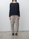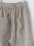 Relaxed fit, tapered drop crotch trousers from Album di Famiglia crafted from a lightweight, soft and stretchy velvet. It features an elasticated waist with drawstrings, side seam pockets, and oversized rounded patch pockets.