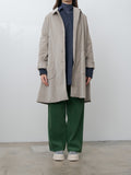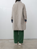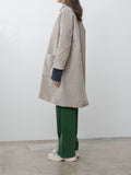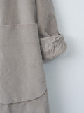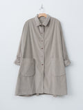 A relaxed-fitting coat with a subtle A-line silhouette, crafted from soft and stretchy cotton velvet and fully lined for comfort and warmth. Details include a regular collar, buttoned front closure, dropped shoulders, and two rounded patch pockets.