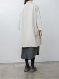 The perfect spring layer from AdF: a single breasted coat crafted from a midweight compact cotton that feels structured yet breathable with a smooth hand. Features a regular collar, buttoned front, dropped shoulders, side seam pockets, 7/8 length sleeves, and a straight hem. Unlined. Oversized fit.
