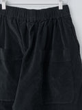 A voluminous, wide leg trouser from Album di Famiglia made in a lightweight, soft and stretchy cotton velvet. It features a drop crotch, elasticated waist with drawstrings, side pockets and back patch pockets. This style is wider and more cropped than the Wide & Short trousers.