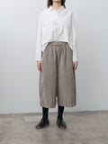 A voluminous, wide leg trouser from Album di Famiglia made in a lightweight, soft and stretchy cotton velvet. It features a drop crotch, elasticated waist with drawstrings, side pockets and back patch pockets. This style is wider and more cropped than the Wide & Short trousers.