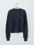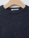 A loose-fit, full-length pullover knit crafted from a rare baby suri alpaca blend. The semi-sheer fibers are slowly and carefully processed to emphasize their natural softness and smooth surface, resulting in a lightweight piece with an airy feel and graceful drape. Designed with saddle-shoulder sleeves, a crew neckline, ribbed cuffs and hem, and elongated sleeves.