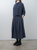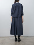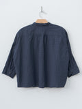 A square-cut shirt with a cropped, straight silhouette and three-quarter length sleeves, made from a lightweight, crisp cotton with a washed finish. Features a pleated button front, a classic collar, and signature Tyrol pleats at the back yoke for subtle volume.