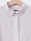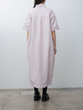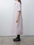 A pullover shirt dress with an easy, softly structured silhouette. It is made from a lightweight cotton-linen blend with a crinkle texture and features a classic collar with a polo-style button front, short sleeves, and a soft pleat below the placket that adds subtle volume at the waist. Relaxed fit.