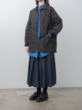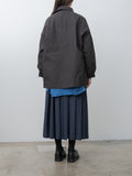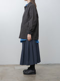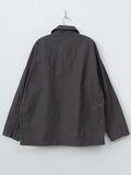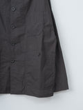 Casey Casey’s signature long-length work jacket, crafted from washed pigment wax cotton. Midweight with a structured, crisp hand and a lightly waxed outer, the fabric develops subtle tonal variations and irregularities that make each piece unique. Features a corozo button front closure, dropped shoulders, front patch pockets with button closures, a chest pocket, and an unlined construction with internal patch pockets.
